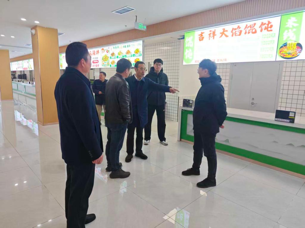 一行实地查看了食堂、商业中心、施工现场等重点区域,查看超市备货情况、自来水管道冲刷及各项施工进展情况,还围绕校园食品安全、用电安全、施工安全等方面,详细查看责任落实,隐患整治与开学准备情况,听取相关部门关于新学期准备工作的情况汇报。