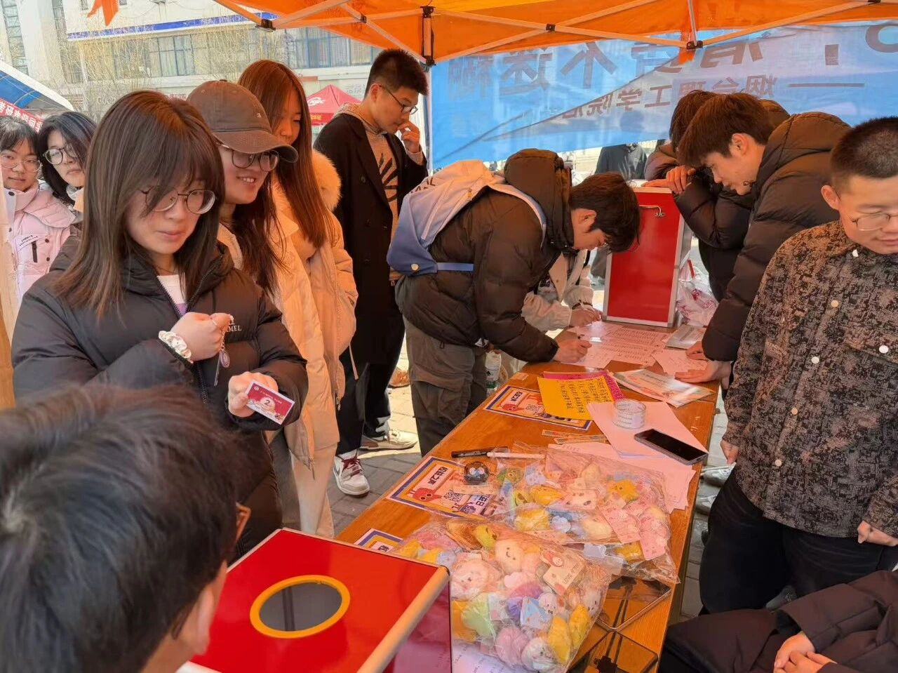 活动现场,后勤处与校团委共同搭建的“消费维权驿站”人头攒动。为了让严肃的法治宣传更接地气,打破传统的展板宣讲模式,精心设置了“烟理工必吃榜”投票、3·15知识问答、慧眼识假·找不同及手机免费贴膜为核心互动环节,将消费维权知识与趣味游戏深度融合。