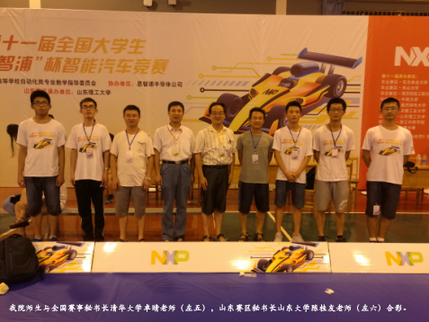 近日,第十一届全国大学生“恩智浦”杯智能汽车竞赛(山东赛区)在山东理工大学西校区举行。烟台大学文经学院张昌州、秦庆磊老师带队参加比赛,并出席闭幕式。经过三天激烈角逐,烟台大学文经学院派出的2支代表队分别获得山东省一等奖1项,优胜奖一项,并且张昌州老师被评为2016年第十一界全国大学生智能汽车竞赛山东赛区“优秀指导教师”。