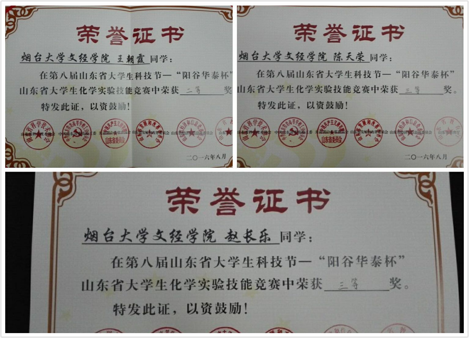 8月19日,第八届山东省大学生化学实验技能竞赛正式落下帷幕。我院食品与生物工程系由张珠老师带队,三位同学参加,最终王朝霞同学获二等奖,陈天荣、赵长乐同学获三等奖。