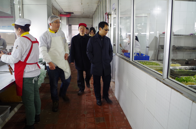 在食堂,检查组特意走进制作间,查看各窗口卫生状况、食品制作流程,保证开学第一天能够就餐到位。检查中,于光辉院长一再强调食品安全问题,并向就餐同学亲切询问饭菜是否可口、菜价是否合理、就餐是否卫生等。看到新餐厅内舒适的就餐环境和干净卫生的新式设备,检查组表示非常满意。