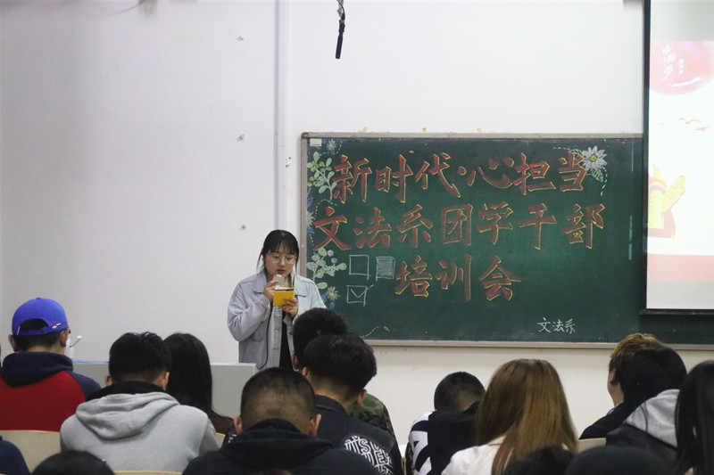 4月19日晚,文法系于一教119教室举办“新时代,心担当”团学干部培训会,文法系团总支书记陈秀慧出席,主要团学干部参加本次培训。