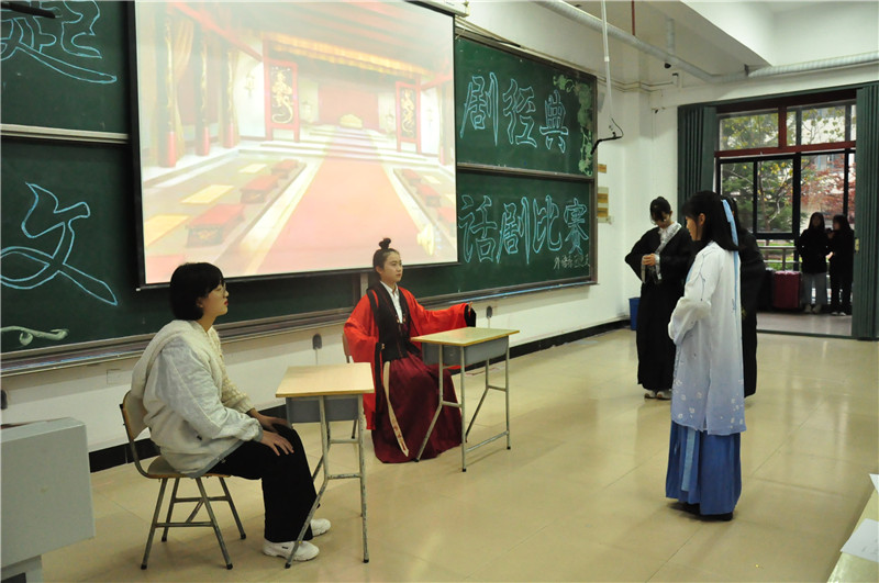 比赛最后,评委们本着公平公正的原则评选了此次的一二三等奖项。其中,外1902-5班带来的《荆轲刺秦王前传》获得此次比赛的一等奖。
