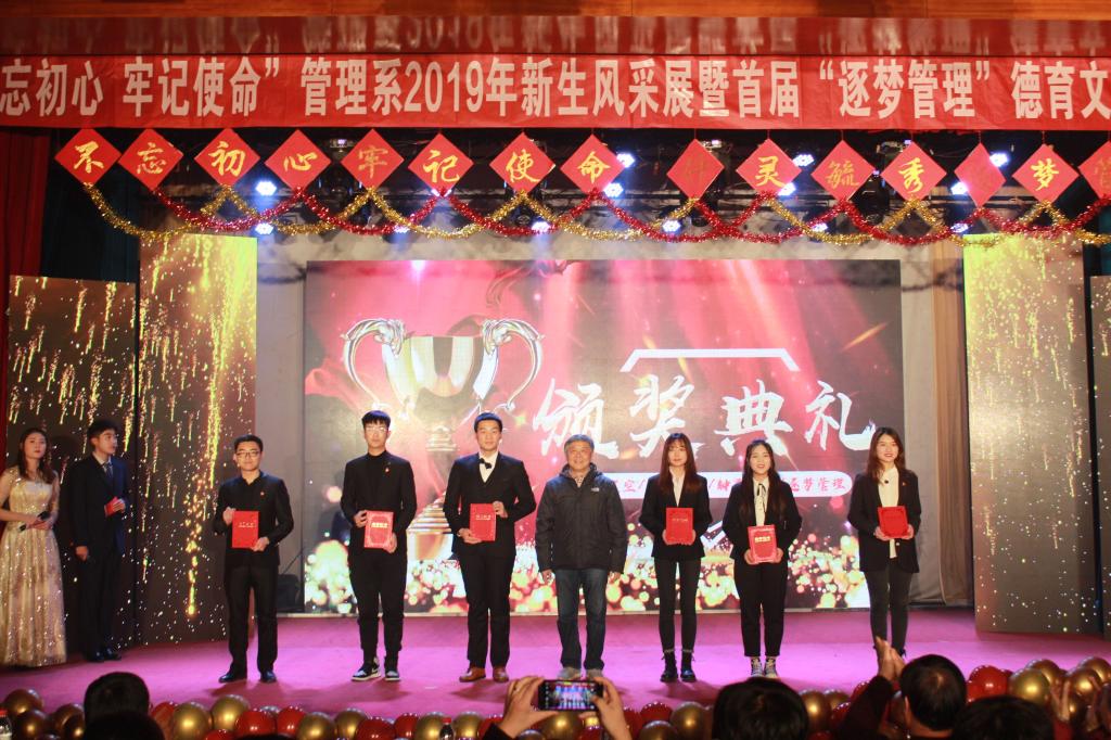 12月12日晚,管理系“不忘初心、牢记使命”2019年新生风采展暨首届“逐梦管理”德育文化节成果展于一教多功能厅盛情开演。院长助理莫红菊,学院管理总督导杜希成、工会主席史毅、组宣部部长张琼玉、学工部部长杜娟、招生就业部部长李洁,管理系主任华吉鹏、党总支书记邓之增以及全系师生参加晚会。