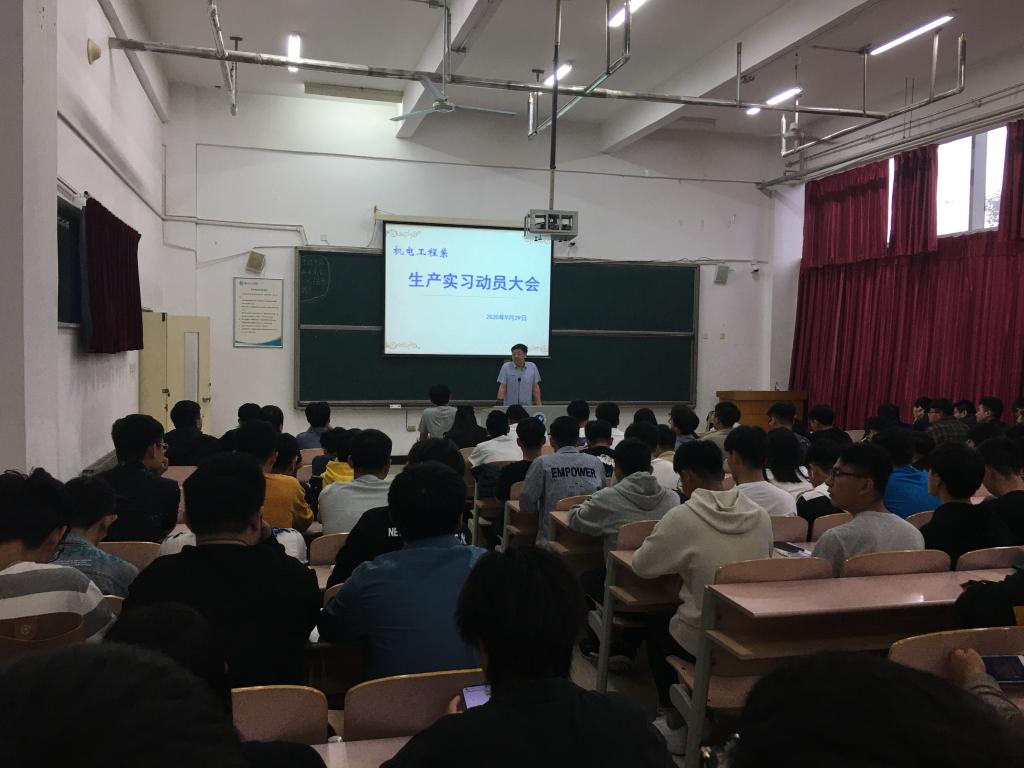 为进一步加强实践教学过程管理,提高实践教学质量,机电系929下午在二教109召开机制专业生产实习动员及安全教育大会,会议由机电系主任刘加光主持,全体实习指导教师及机制毕业班的全体同学参加会议