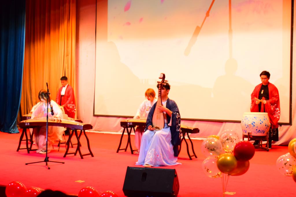忽闻琵琶乐声起,喜闻古筝流水声。民乐《盛世国乐》鼓乐齐鸣的演奏优美动听,充分展现了中国传统乐器的独特魅力;英文歌《Walkashame》高音嘹亮,声线优美,引得全场欢呼呐喊,同学们随旋律挥起了手中的荧光棒,沉浸在晚会的气氛之中;小品《广告双子星》创意满满,逗得全场笑声连连;由新老生联手出演的《歌曲串烧》,用优美动人、魅力无限的声线串起新老生的情谊。接下来,说唱《天上的星星不说话》向同学们讲述了受挫后依然坚持梦想、坚持自我,让母亲为自己而骄傲的故事。小品《乌龙快递》与朗诵《他们,我们》以抗疫为主题,精彩的演绎了疫情之下的医护人员和各个岗位的工作人员不顾自身安危,“疫”往直前,弘扬了奔赴前线只为山河无恙的抗疫精神。晚会在系学生会全体成员演唱的歌曲《我们都是追梦人》中结束,精彩的演唱激励着外语系新生放飞梦想,在奔跑中拥抱梦想,拥抱美好的明天!