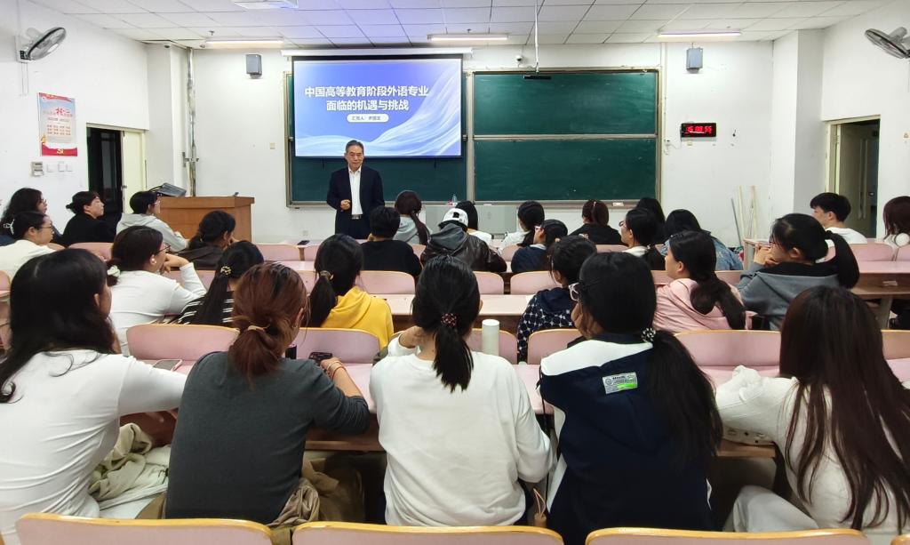 10月15日,外国语学院在二教113教室举行“外语专业机遇与挑战”专题讲座。本次讲座由烟台市人民政府外事办公室原主任尹国文主讲,2025级全体新生到场聆听,现场学习氛围浓厚。