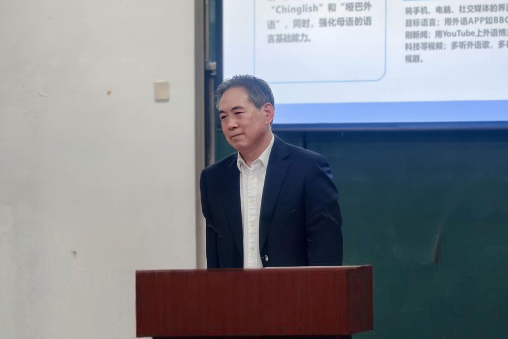 尹国文主任以专业的视角,从七个核心维度系统解读外语专业的发展脉络与时代命题。他首先梳理了外语学科的发展历程与当前现状,直面人工智能翻译技术普及、单一语言人才市场竞争力弱化等行业痛点。随后,他结合共建“一带一路”倡议深入推进与教育对外开放持续深化的时代背景,详细剖析了外语专业在跨境合作、国际交流等领域涌现的新机遇。讲座中,他着重强调“外语 +”复合型人才的核心竞争力,建议同学们将语言优势与经贸、法律、新闻等专业领域知识深度融合。他同时鼓励同学们主动拓宽国际视野,积极适应跨境电商、远程协作翻译等新兴就业形态,通过实践全面提升跨文化沟通能力与实战应用水平。