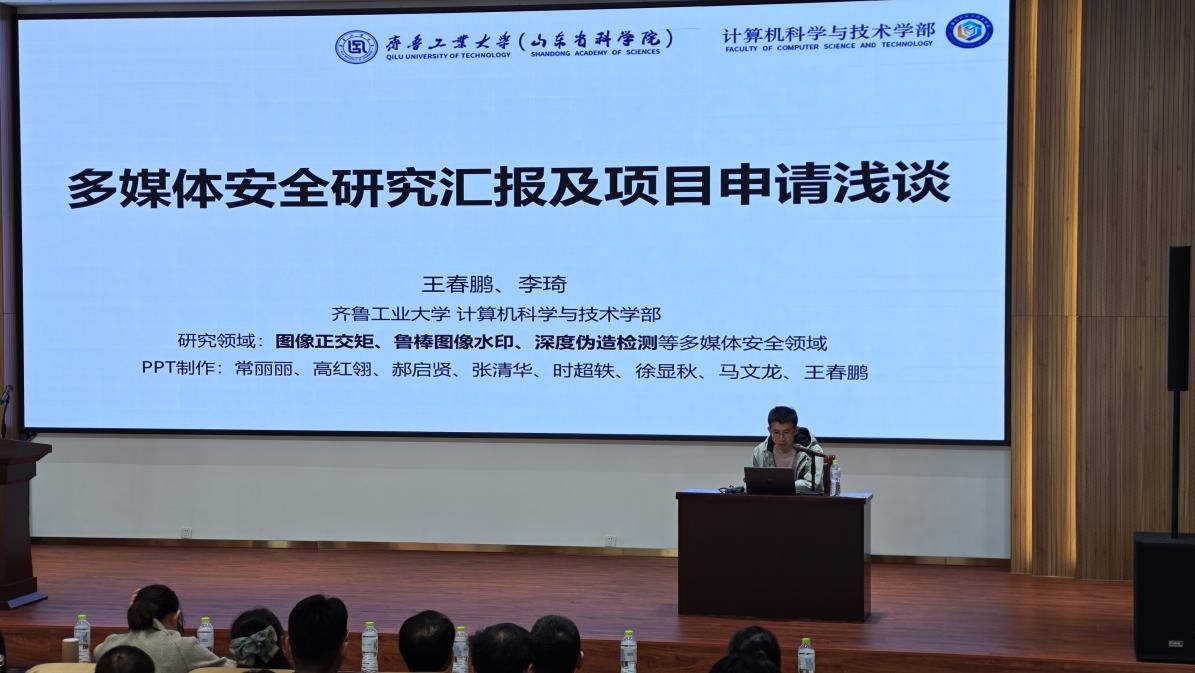 为提升学院教师在多媒体安全领域的科研创新能力,助力国家(省级)科研项目申报工作,加强学术前沿交流与学科建设,10月27日下午,信息工程学院在综合楼六楼报告厅举办多媒体安全研究汇报及项目申请学术报告。会议特邀齐鲁工业大学王春鹏博士作专题汇报,学院副院长康凤主持会议,学院全体教师及学生参加。
