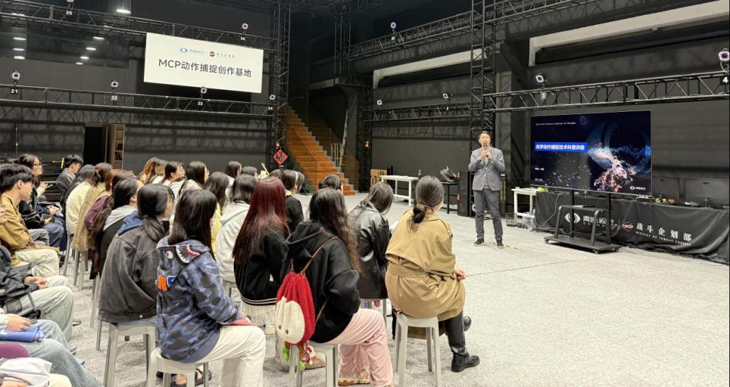 11月3日,建筑工程学院数字媒体艺术系首届毕业班在系主任潘萌、班主任冷涵的带领下赴上海青瞳视觉MCP动作捕捉创作基地开展研学活动。本次活动以“光学动作捕捉技术”为核心,通过理论讲解、实操体验与职业引导相结合的模式,深化学生对数字媒体艺术行业技术应用与职业发展的认知。