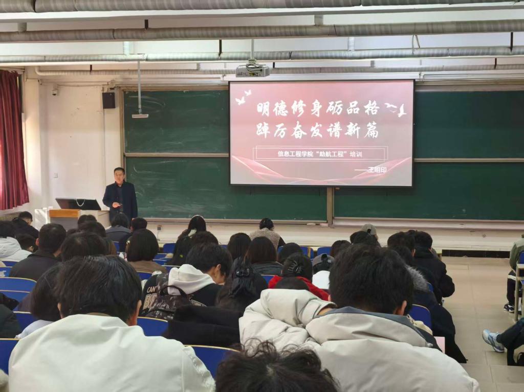 为增强学生骨干的责任意识与综合能力,扎实推进信息工程学院“四航工程”的育人精神,11月6日,学院于一教102开展“助航工程”主题培训。党总支副书记王明印主讲,全体辅导员及全体学生干部参与此次培训。