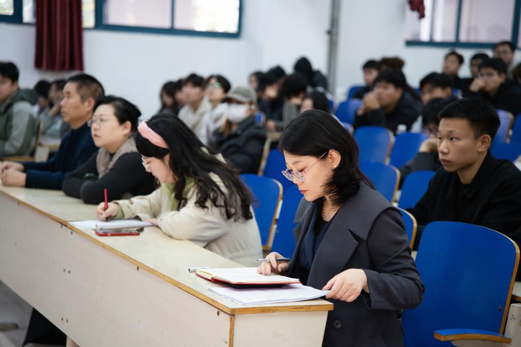 培训伊始,王明印以“学生骨干如何做‘桥梁’与‘标杆’”为核心展开分享。他首先明确班干部“上传下达、组织凝聚、服务引领”的职责:上传是精准传递学院要求,下达是把同学心声讲清楚;组织活动要让大家愿意来、有收获,服务要落在同学需要的实处。谈及品格底色,他强调:学生干部要堂堂正正做人、清清爽爽做事。接着,他结合学生工作实例,细化能力提升路径:从“集体荣誉不是喊口号,是宿舍卫生一起盯、班级活动抢着上”的集体意识,到“部门间不推活、遇矛盾先换位思考”的协作精神;从“和同学聊天要‘听进去、帮得上’,和老师沟通要‘说清楚、问明白’”的关系协调,到“课上坐前排、工作列清单”的学业与工作平衡法,句句落在学生骨干的实际工作场景中。