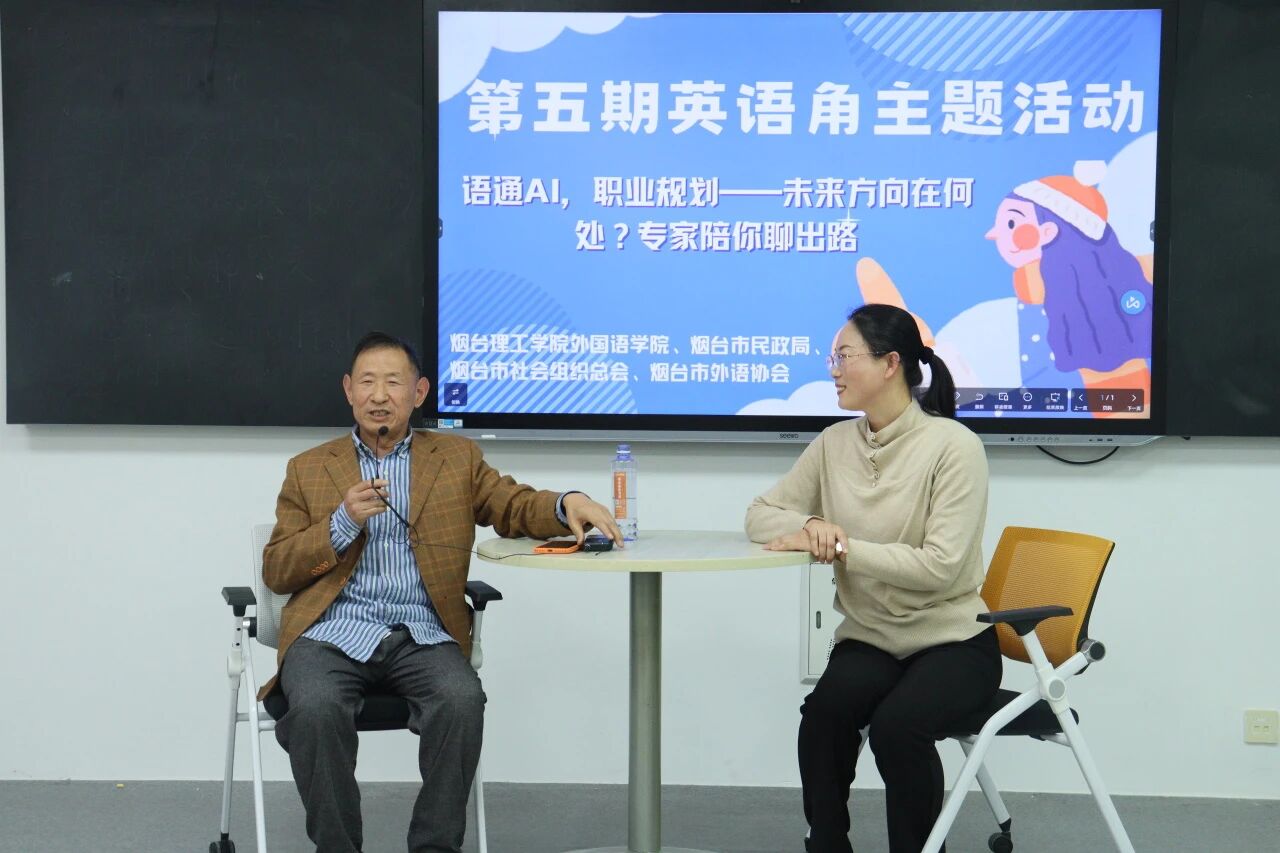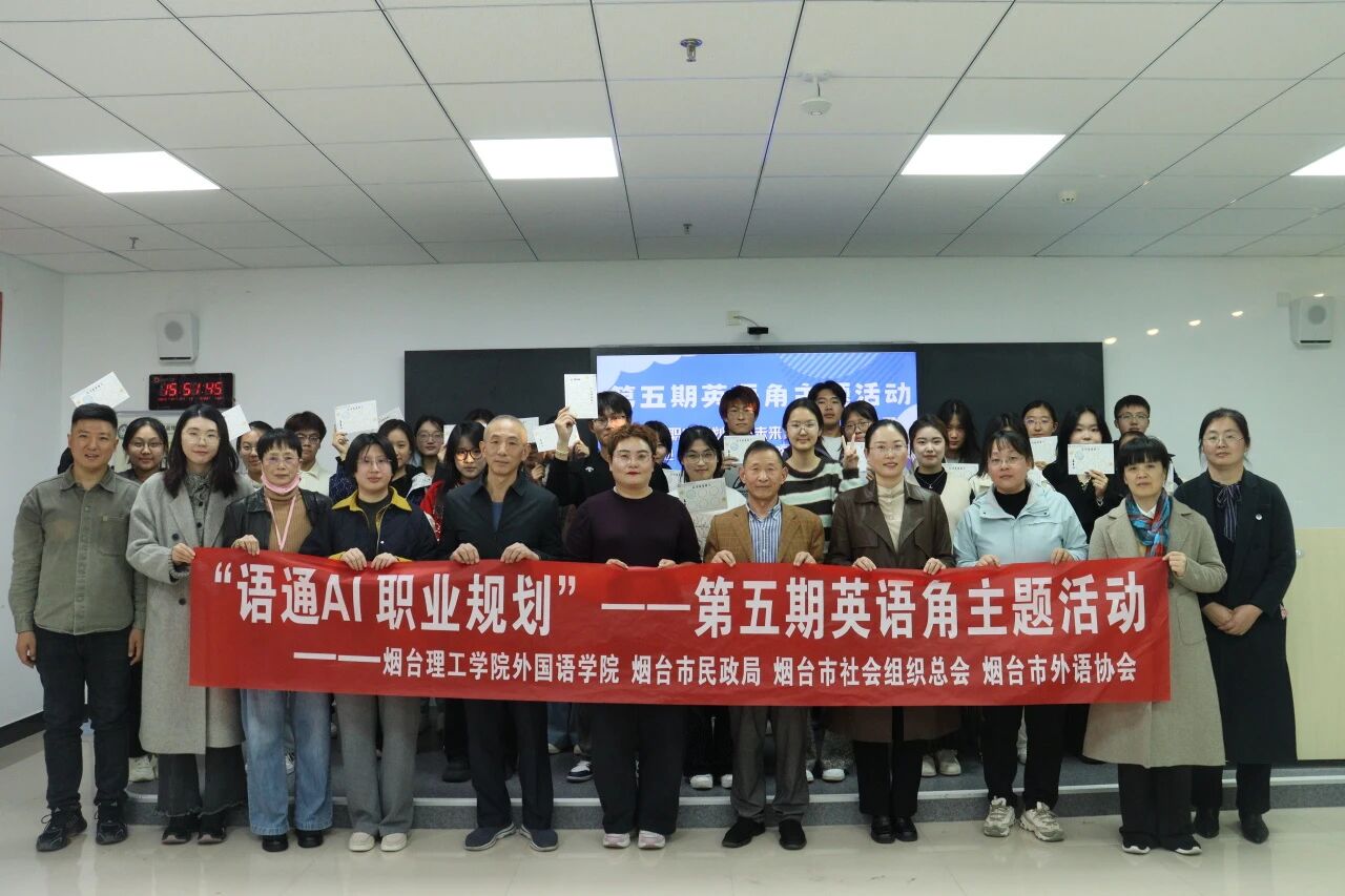 为帮助同学们明晰AI时代外语类职业发展路径,树立科学职业规划理念,11月14日,外国语学院在综合楼S203智慧教室开展第五期英语角活动。本次活动特邀烟台市外语协会会长、三特翻译事务所总经理担任主讲。外国语学院常务副院长于巧丽、党总支副书记陈秀慧、院长助理张丽及教师代表参加本次活动。