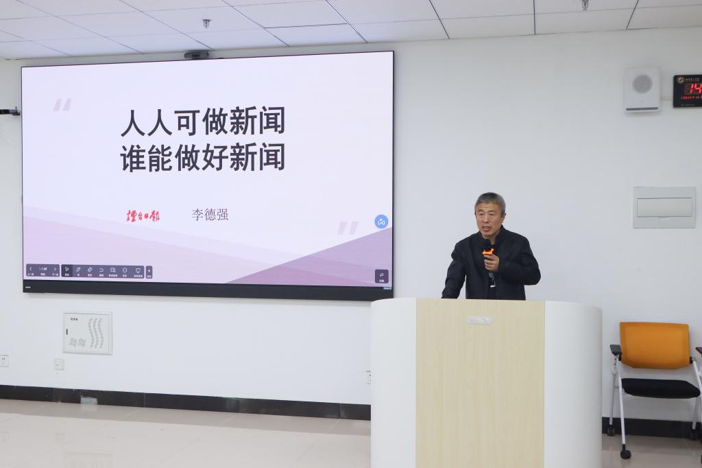 12月18日下午,烟台理工学院在综合楼S209智慧教室举办新闻写作专题培训,邀请烟台日报融媒体中心文体新闻部主任李德强主讲,各学院、部门宣传员参加。本次培训旨在提升学校宣传队伍的新闻发现与写作能力,通过专业指导,帮助宣传员更好地捕捉校园亮点,讲好烟理工故事。